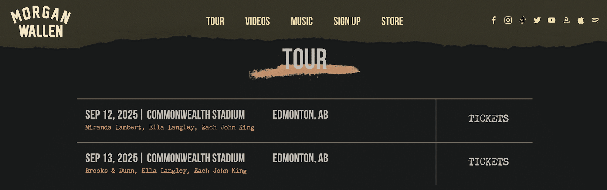 Morgan Wallen’s upcoming tour schedule. Photo via www.MorganWallen.com