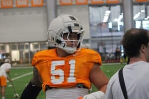 David Sanders is listed as Tennessee’s starting right tackle on the depth chart, but is yet to play a game. The true freshman and former five-star recruit was thought to be good to go for the opener against Syracuse, but was a late scratch by the medical team.