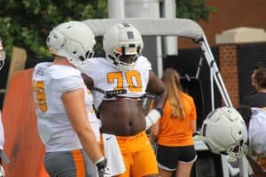 David Sanders is listed as Tennessee’s starting right tackle on the depth chart, but is yet to play a game. The true freshman and former five-star recruit was thought to be good to go for the opener against Syracuse, but was a late scratch by the medical team.