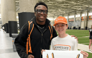 Tennessee Football Star CB Colton Hood Meets with Young Fan After Practice