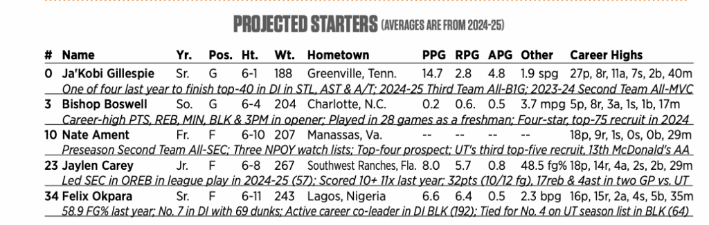 Assists: Ja’Kobi Gillespie — 6 APG, 4 TOPG, 28 MPG