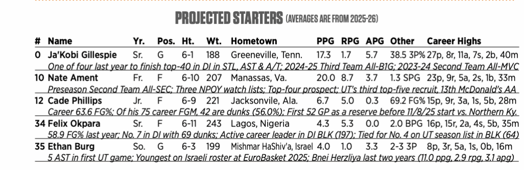 Assists: Ja’Kobi Gillespie — 5.7 APG, 3.7 TOPG, 28.7 MPG