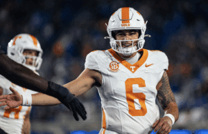 Aguilar could wind up passing Hendon Hooker on Tennessee’s all-time single-season passing yard list by the end of the Florida game on Saturday night. He entered the game needing 195 yards to break Hooker’s mark from the 2022 season. Aguilar had 64 total passing yards when he passed the 3,000-yard mark in the first quarter.