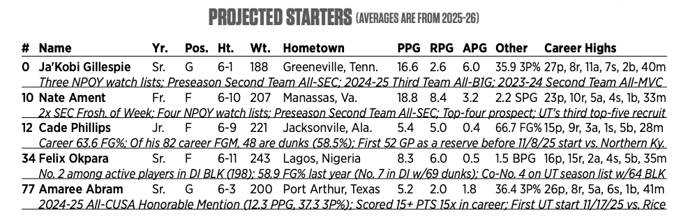 Assists: Ja’Kobi Gillespie — 6 APG, 3.8 TOPG, 30 MPG