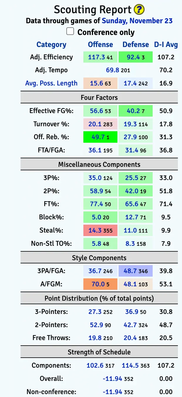 Rutgers does not shoot many three pointers and Tennessee’s rim defense has been strong so far this season. The Scarlett Knights also haven’t forced many turnovers to this point in the season which has been Tennessee’s biggest flaw to this point in the season.