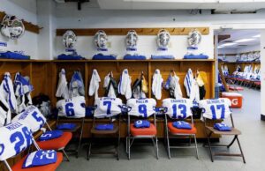 Kentucky Football locker room at Neyland Stadium before the Tennessee game. Photo via Elliott Hess/UK Athletics Communications.