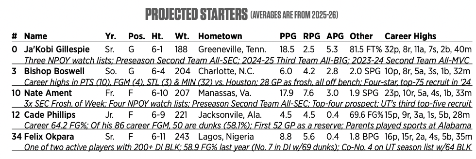 I’m most curious to see how Tennessee responds defensively after a poor showing against Kansas and half a week to watch film of the performance. The Vols have some limitations on that side of the court but I expect them to be locked in on that end of the court.