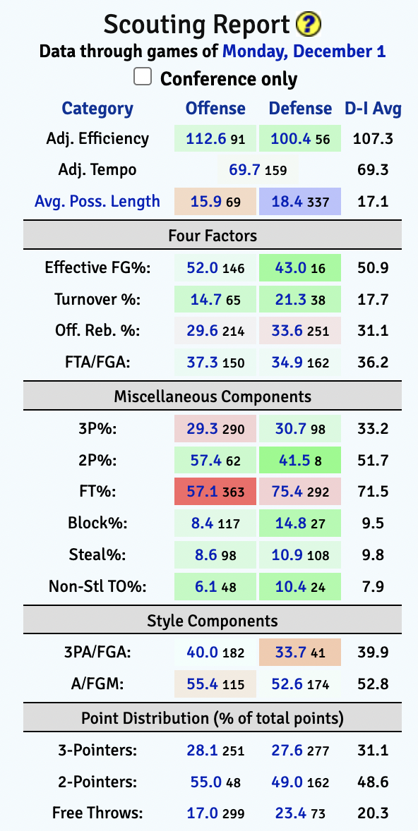 Points: Kiyon Anthony — 11.9 PPG, 44.3 FG%, 22.2 3PT%