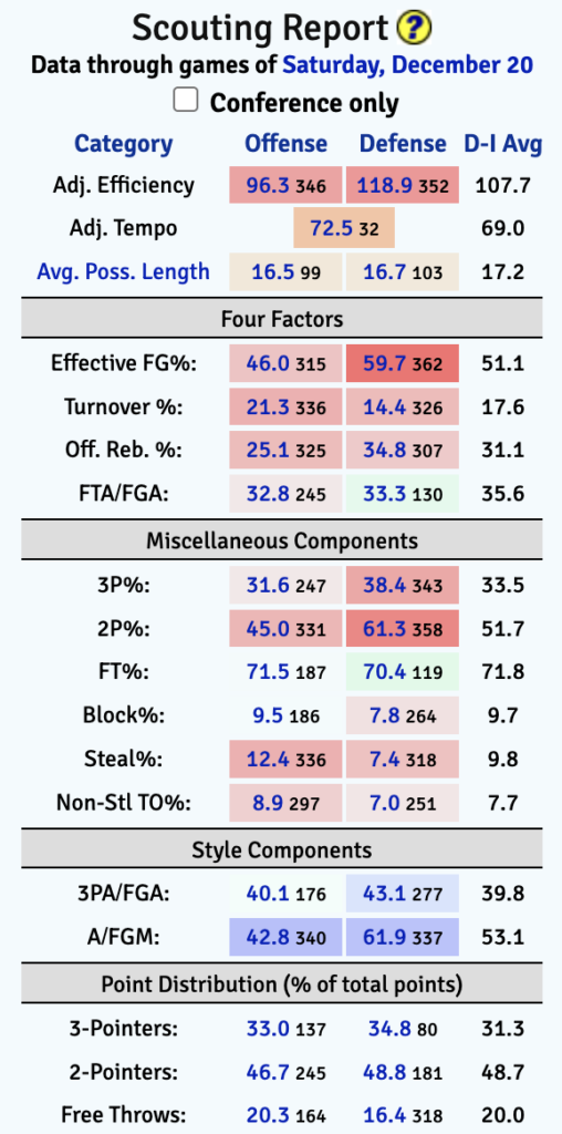 Assists: Ja’Kobi Gillespie — 5.4 APG, 2.7 TOPG, 32.2 MPG