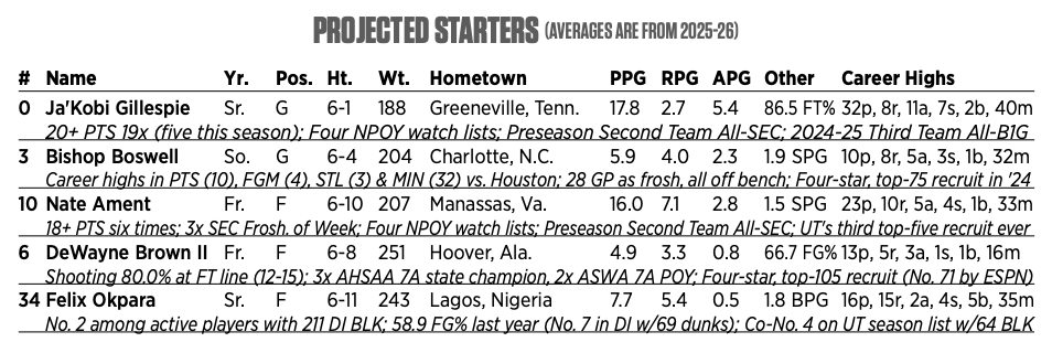 Assists: Ja’Kobi Gillespie — 5.4 APG, 2.7 TOPG, 32.2 MPG