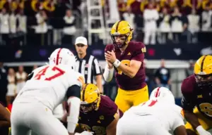 However, in 2024, Leavitt put together one of the greatest seasons in program history. Alongside running back Cam Skattebo, the pair led Arizona State to the College Football Playoffs. In 13 games, he threw for 2,885 yards, 24 touchdowns and six interceptions.