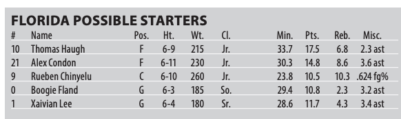 Points: Thomas Haugh — 17.5 PPG, 47.6 FG%, 34.2 3PT%